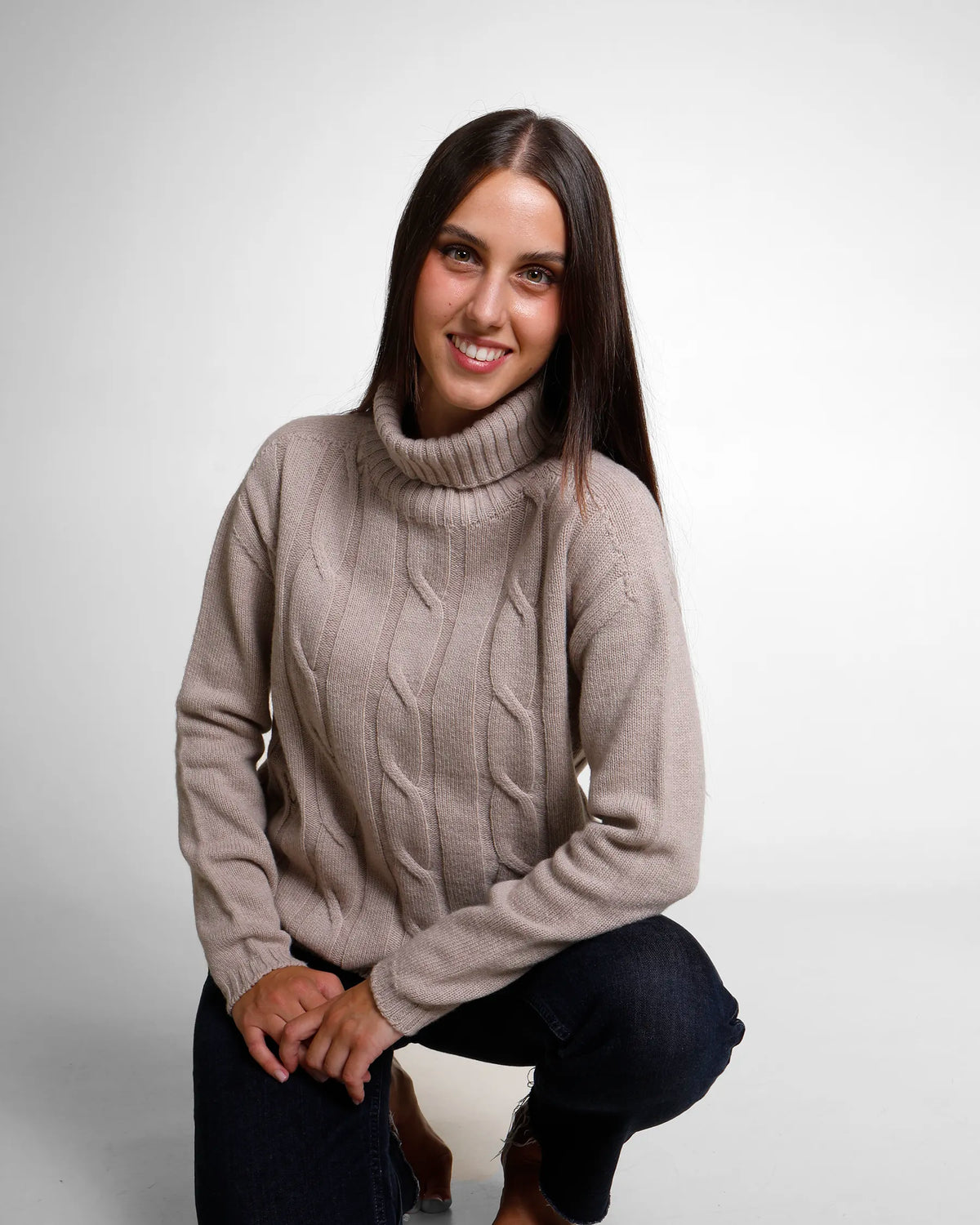Dolcevita spalla bassa a trecce in lana e cashmere