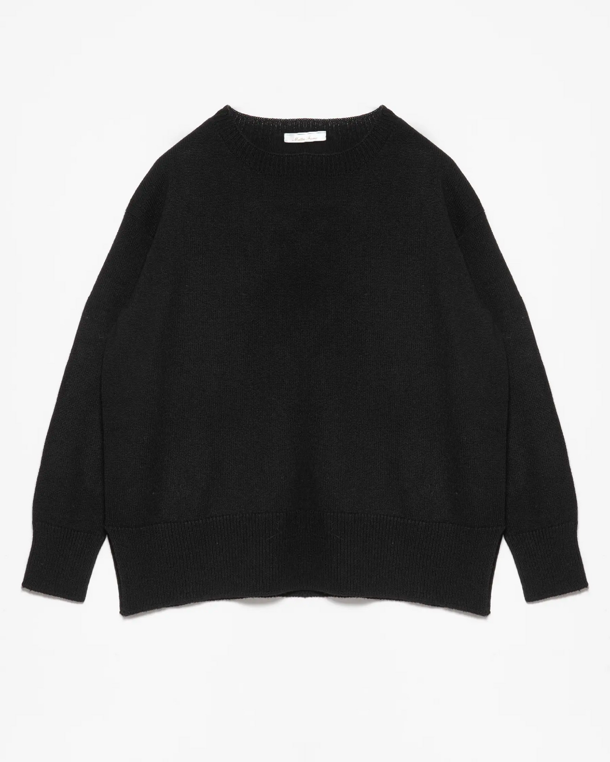 Maxi maglia girocollo lana e cashmere con spacchi laterali, due fili