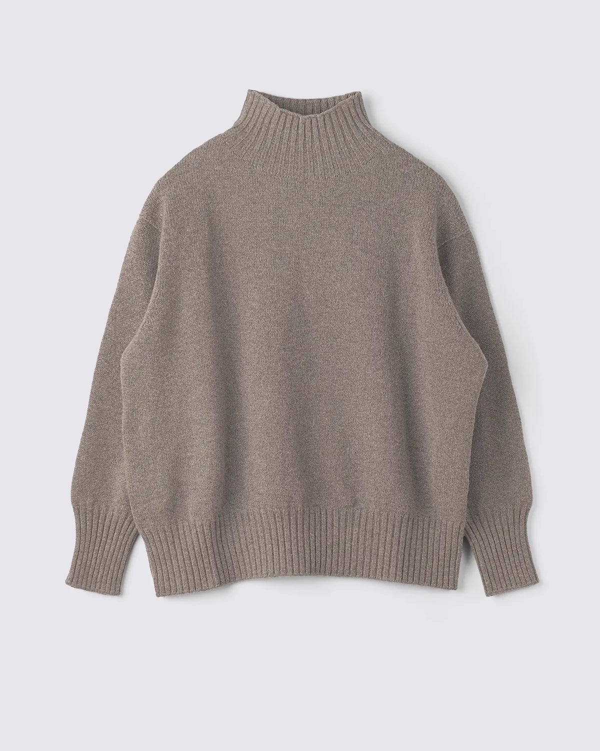 The oversized three-ply boxy turtleneck is a modern and comfortable piece, designed for those seeking a casual yet sophisticated look. The turtleneck design features a high, soft collar that adds a touch of elegance, while the oversized fit lends a relaxed, contemporary look.